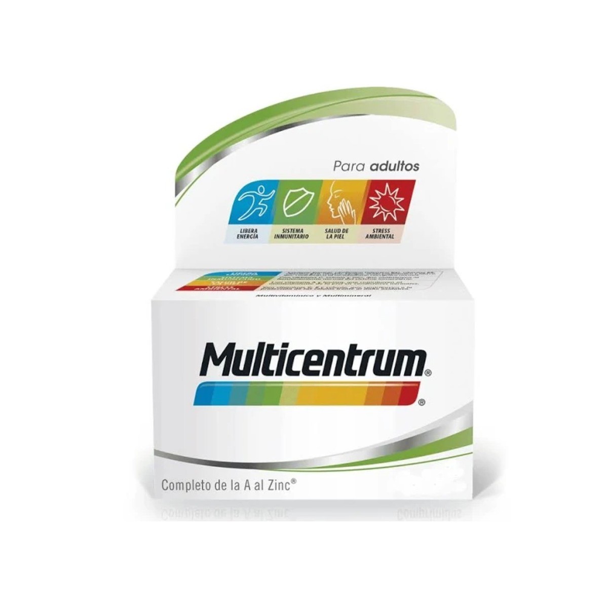 Este complemento alimenticio está formulado a base de vitaminas y minerales que ayudan a cubrir los requerimiento nutricionales de adultos y niños mayores de 12 años. Proporciona a nuestro organismo energía, sistema inmunitario, salud de la piel y stress ambiental.